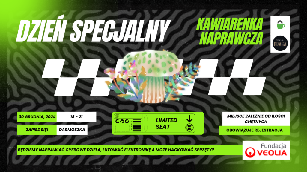 Oprócz naszej cotygodniowej kawiarenki naprawczej (Sąsiedzki Garaż Naprawczy), gdzie możecie wpaść podreparować swoje sprzęty, nasz fascynat Michał od Mchu, elektroniki, sztuki interaktywnej i nowych mediów proponuje nieco rozszerzone spotkanie specjalne. Tak jak Stacja jest obecnie organizacją bezdomną, bytem bez miejsca i nieco wirtualnym, tak samo i My możemy zająć się naprawą również naszych cyfrowych dzieł, zbudowanych z kodu. Oczywiście zapraszamy też na diagnozę elektroniki i naprawę prostych sprzętów, a może zastanowimy się jak je sHACKować? Lutowanie, łączenie kabelków i programowanie móżdżków cyfrowych to jest to, co lubimy. A może przyjdzie też Pan Marek z politechniki naprawić Wam zdalnie sterowane samochodziki? A może Karol z Centrum Nauki Kopernik opowie ciekawostki? Zo ba czy my. Po spotkaniu będzie możliwość kontynuacji pracy nad Waszymi programami i dziełami online na Discordzie Mchu![]()