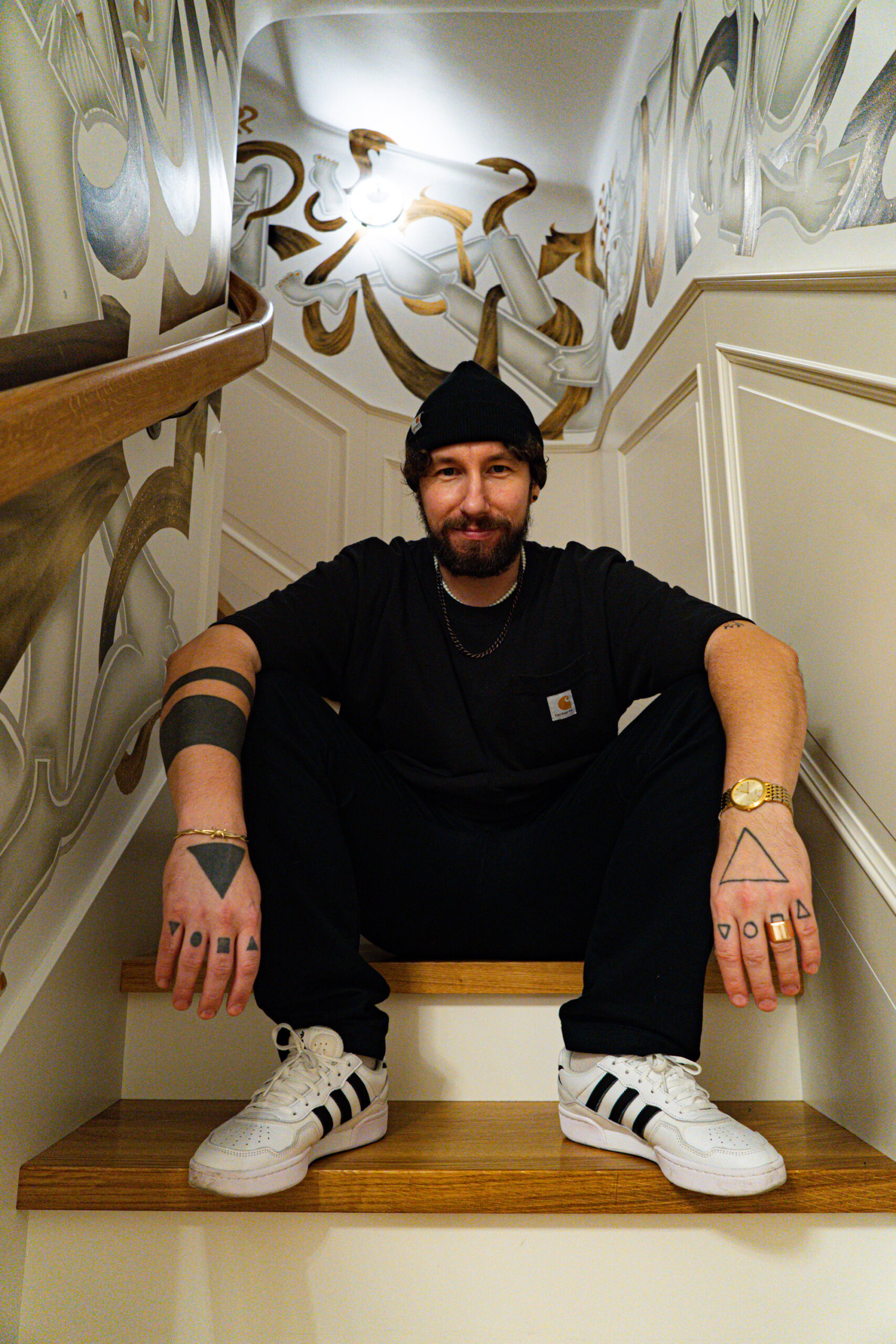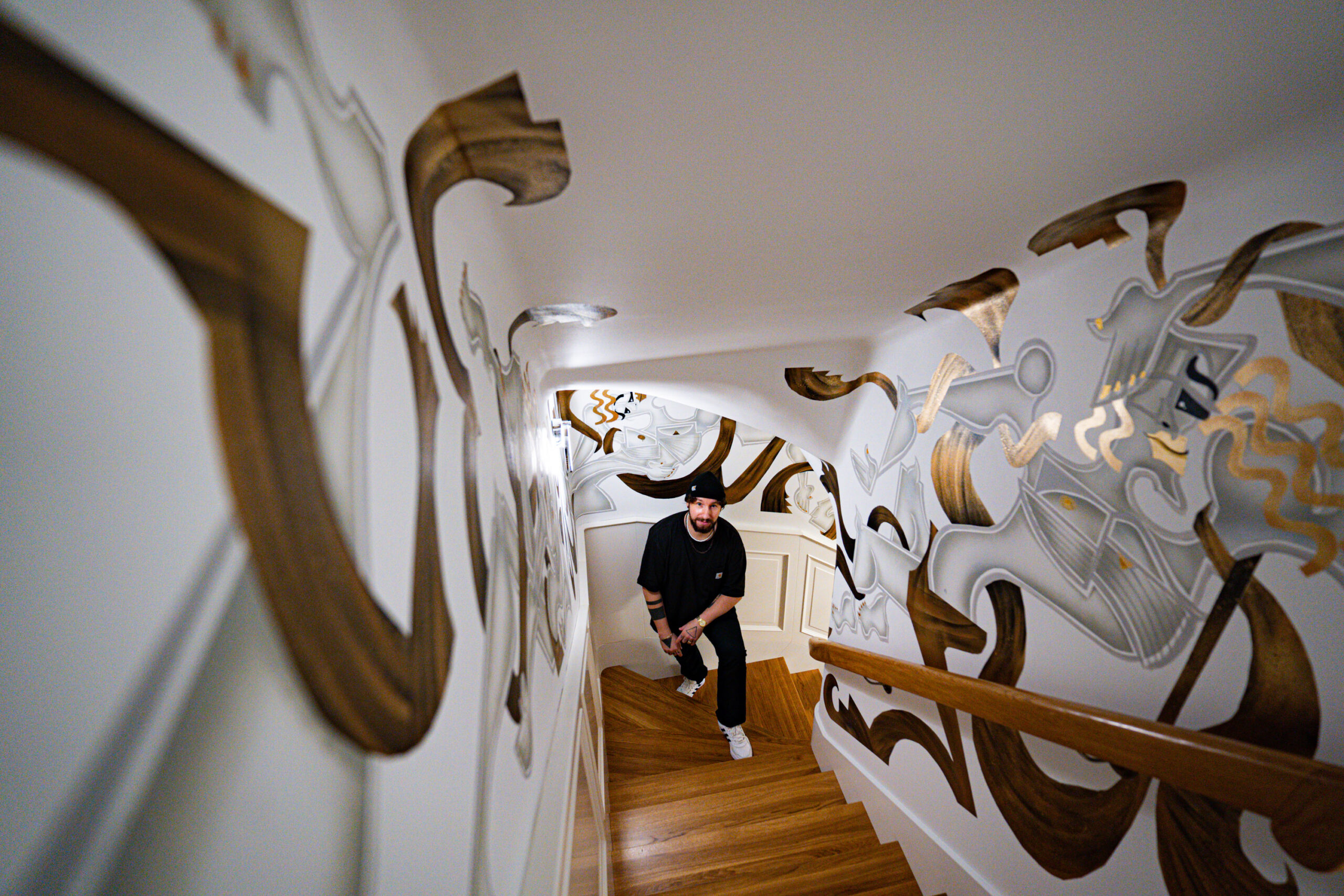 It draws on the aesthetics of brutalism, glitch, cubism and geometry, and also refers to hip-hop, subcultures and modernist architecture.